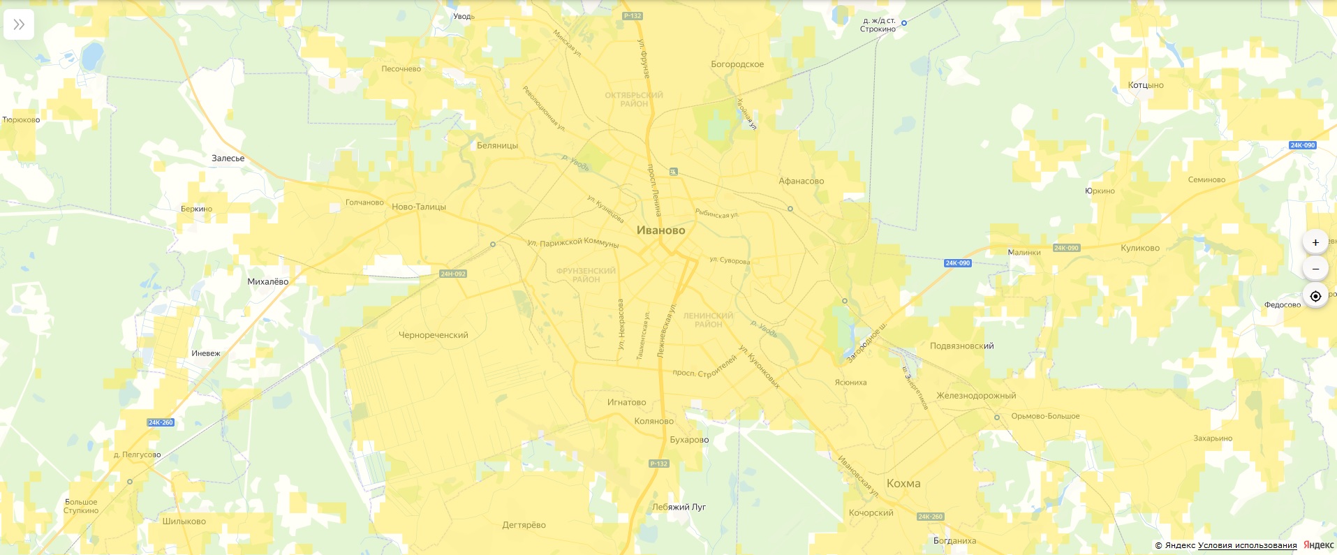 Информация о покрытии сети носит ориентировочный характер, фактическое покрытие сети и фактическая скорость приема/передачи данных зависит от типа и характеристик абонентского устройства, радиоусловий в месте нахождения абонента, особенностей рельефа и метеорологических условий, количества абонентов с устройствами, работающими в той же соте.